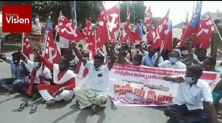 இந்நிலையில் புதிய வேளாண் சட்டங்களை திரும்பப் பெற வலியுறுத்தியும், தொழிலாளர் சட்டங்களை கைவிட கோரியும் இந்திய கம்யூனிஸ்ட் கட்சியினர் சாலை மறியல் போராட்டத்தில் ஈடுபட்டுள்ளனர்.