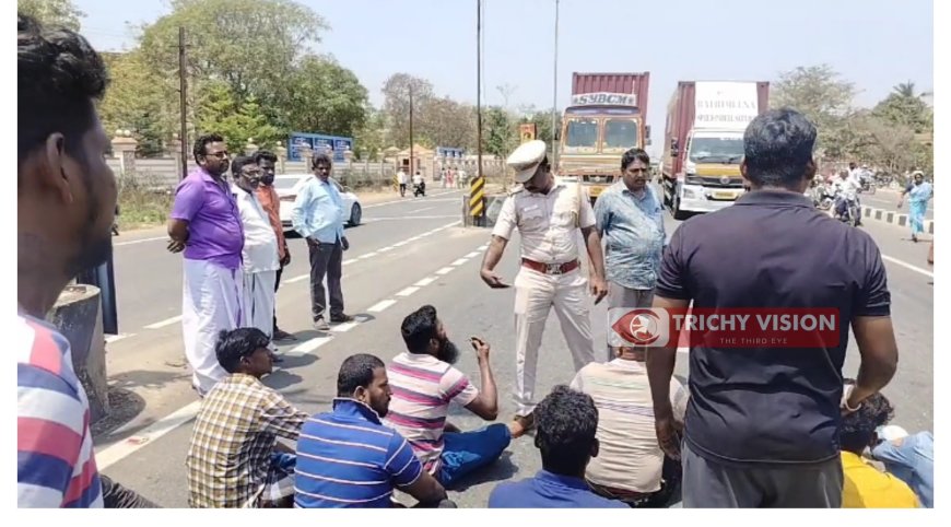 திடீரென 30க்கும் மேற்பட்ட தரைக் கடை வியாபாரிகள் சாலை மறியல் போராட்டம் நடத்தினர். இதன் காரணமாகதிருச்சி – புதுக்கோட்டை தேசிய நெடுஞ்சாலையில் போக்குவரத்து பாதிக்கப்பட்டது.