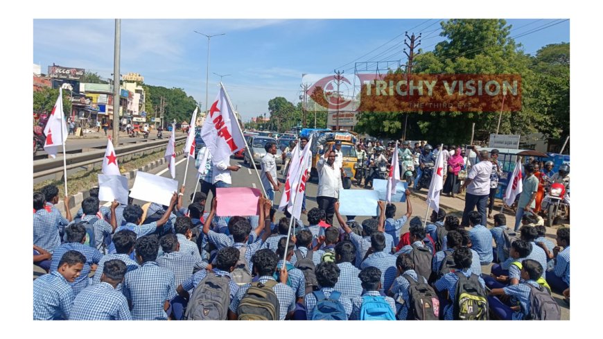 திருச்சி காட்டூர் ஆதிதிராவிடர் ஆண்கள் மேல்நிலைப்பள்ளியில் 50 ஆண்டுகளுக்கு பழமையான கட்டிடத்தில் மாணவர்கள் தங்க வைக்கப்பட்டு இருப்பதனை கண்டித்தும், உடனடியாக கட்டிடத்தை இடிக்க கோரியும் மாற்று ஏற்பாடு செய்து தரப்படும் கோரியும்,