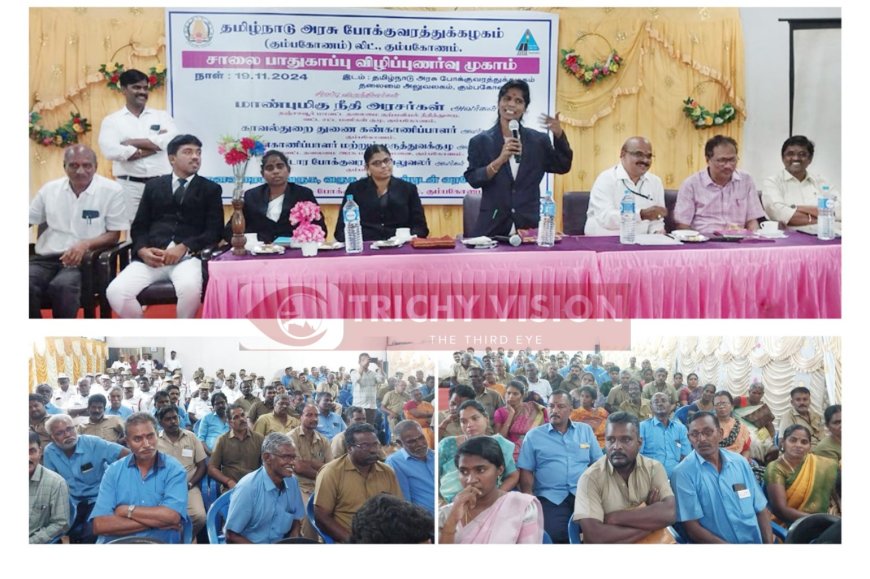 தமிழ்நாடு அரசு போக்குவரத்துக் கழகம், கும்பகோணம் தலைமையகத்தில் சாலை பாதுகாப்பு விழிப்புணர்வு முகாம் நிர்வாக இயக்குநர் இரா.பொன்முடி, முதன்மை மாவட்ட உரிமையியல் நீதிபதி ரஞ்சிதா ஆகியோர் பங்கேற்பு