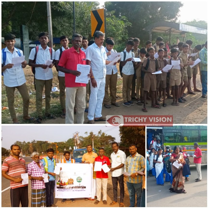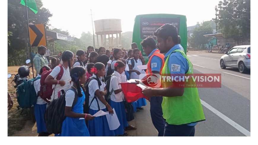 இதனை தொடர்ந்து திருப்பராய்த்துறை சுங்கச்சாவடி நிர்வாக அலுவலர்கள் சார்பாக பொதுமக்கள் மற்றும் மாணவ மாணவிகளுக்கு சாலை பிரசுரம் வழங்கி சாலை பாதுகாப்பு குறித்த எடுத்துரைத்தனர்.