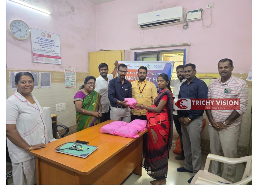 திருச்சிராப்பள்ளி ரோட்டரி டைமண்ட் சிட்டி எலைட் சங்கம் சார்பில் ரோட்டரி மாவட்டம் 3000ன் ஆசை மகள் திட்டத்தின் கீழ் தாய் சேய் நலத்திற்காக மரக்கடையில் அமைந்துள்ள தென்னூர் நகர்புற ஆரம்ப சுகாதார நிலையத்தில் இன்று வாராந்திர பரிசோதனைக்கு வந்த 30 கர்ப்பிணி பெண்களுக்கு மொத்தம் ரூ.10,000 மதிப்பிலான ஊட்டசத்து மிக்க உணவு பொருட்கள் வழங்கப்பட்டன.