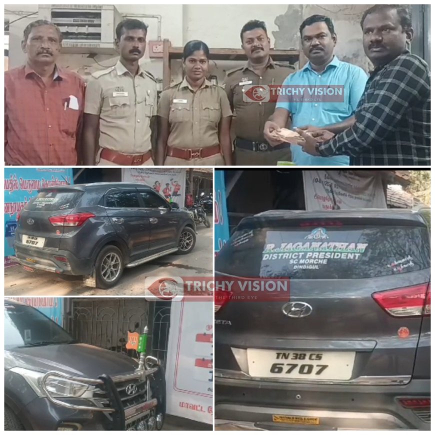 அப்போது பாஜக கொடி கட்டிய காரில் திண்டுக்கல் மாவட்டம் வேடசந்தூர் தாலுகா இந்திரா காலனி பகுதியை சேர்ந்த ஜெகநாதன் என்பவரும், திண்டுக்கல் மாவட்டம் வேடசந்தூர் தாலுகா மூணான்பட்டி பகுதியை சேர்ந்த சிவலிங்கம் என்பவரும் திண்டுக்கல் நோக்கி சென்று கொண்டிருந்தனர்.