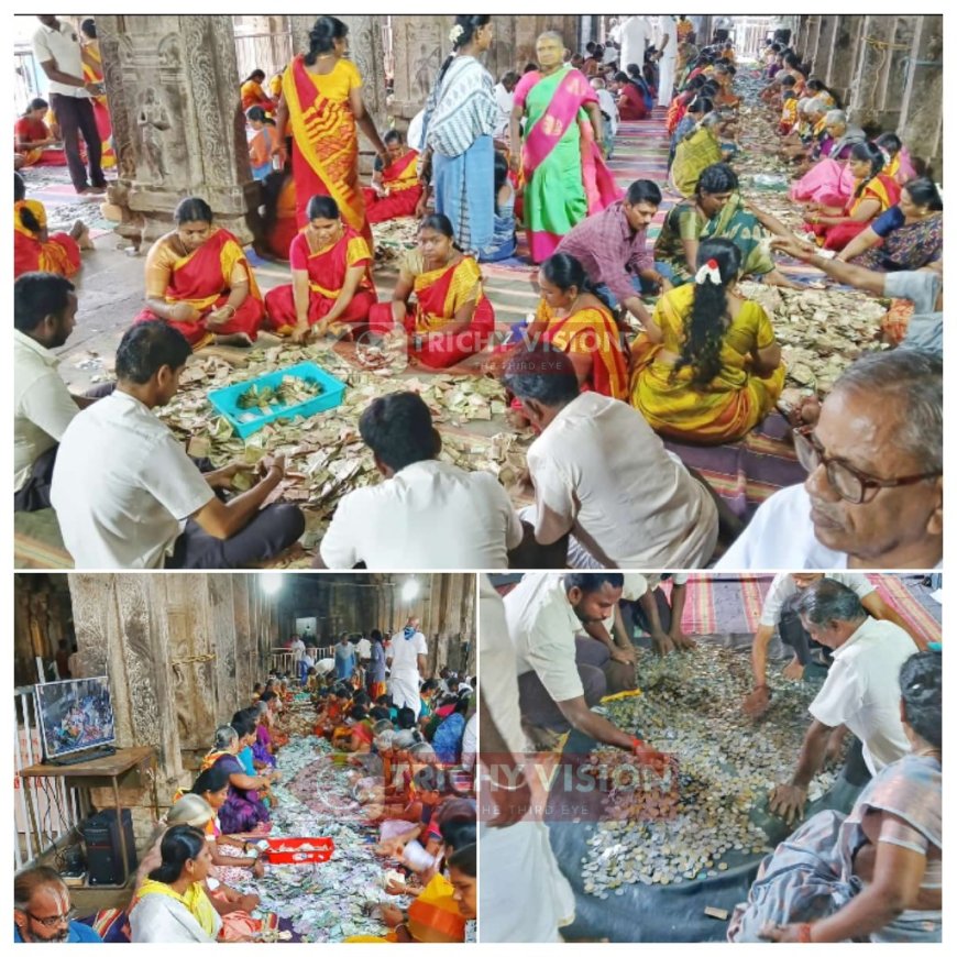 108 வைணவ திருத்தலங்களில் முதன்மையானதும் பூலோக வைகுண்டம் என அனைவராலும் போற்றப்படும் திருச்சி ஸ்ரீரங்கம் அருள்மிகு அரங்கநாதசுவாமி திருக்கோயில் இன்று மாதாந்திர உண்டியல்கள் திறக்கப்பட்டு பக்தர்களின் காணிக்கைகள் என்னும் பணி கோவில் கருட மண்டபம் அருகே கோவில் இணை ஆணையர் மாரியப்பன் முன்னிலையில் நடைபெற்றது. காணிக்கை எண்ணும் பணி முழுவதும் சிசிடிவி காட்சிகள் மூலம் கண்காணிக்கப்பட்டது.