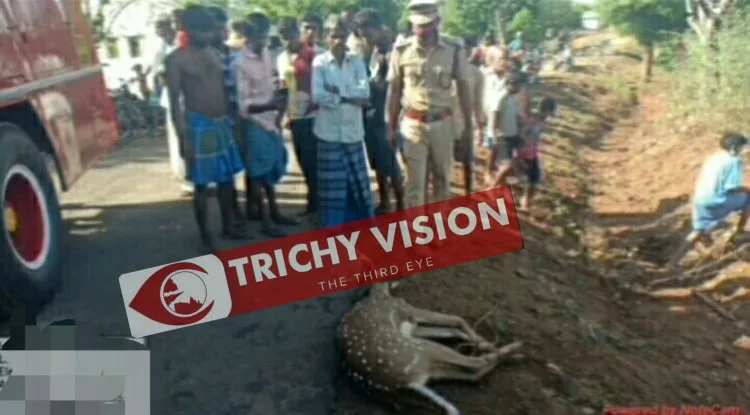 திருச்சி மாவட்டம் மண்ணச்சநல்லூர் அருகே பூனாம்பாளையம் ஊராட்சி வடக்குப்பட்டியில் உள்ள வீனி பண்ணையருகே செல்வக்குமாருக்கு சொந்தமான கிணற்றில் இரை தேடிவந்த புள்ளிமான் தவறி விழுந்தது. இதை கவனித்த அப்பகுதியைச் சேர்ந்த ராஜ்குமார் சமயபுரம் தீயணைப்பு நிலையத்திற்கு தகவல் கொடுத்தார்.
