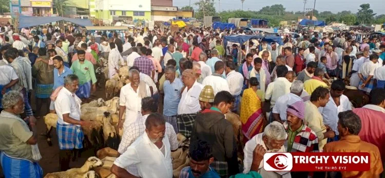 இந்த வாரச் சந்தைக்கு திருச்சி மட்டுமில்லாது துறையூர்,முசிறி மண்ணச்சநல்லூர், லால்குடி,வெளி மாவட்டம் உள்ளிட்ட பகுதிகளில் இருந்து ஆடுகள் வளர்ப்பவர்களும் ,வியாபாரிகளும் வந்து ஆடுகளை விற்பனை செய்து வருகின்றனர். அதேபோல் இங்கு விற்பனை செய்யும் ஆடுகளை அதிகளவில் வாங்குபவர்களும் திருச்சி மட்டுமன்றி அரியலூர், பெரம்பலூர்,திண்டுக்கல், மதுரை ,ராமநாதபுரம்,பாண்டிச்சேரி உள்ளிட்ட பல்வேறு மாவட்டங்களிலிருந்து வியாபாரிகள் ஆடுகளை வாங்கி செல்வது வழக்கம்.