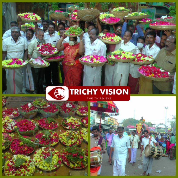 பின்னர் பூக்கள் அனைத்தும் அம்மனுக்கு சாற்றப்பட்டு அர்ச்சனை செய்யப்பட்டது. அதனைத் தொடர்ந்து இன்று முதல் திருச்சி மட்டுமன்றி, தமிழகத்தின் பல்வேறு பகுதிகளிலிருந்து அம்மனுக்கு பக்தர்கள் கொண்டு வரும் பூக்களைக்கொண்டு புஷ்பாபிஷேகம் நடைபெறும்.