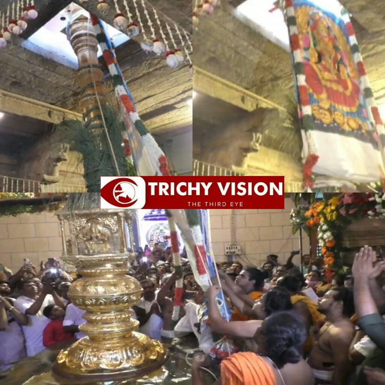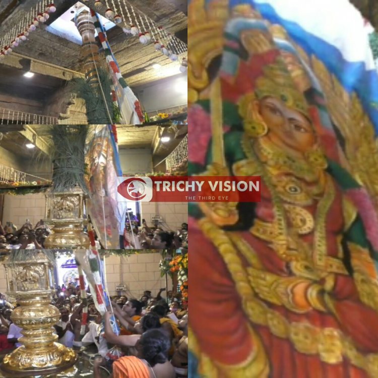 திருச்சி மாவட்டம், சமயபுரம் அருள்மிகு மாரியம்மன் கோயில் சித்திரை தேரோட்டம் விழாவை முன்னிட்டு கொடியேற்றம் இன்று நடைபெற்றது. தமிழகத்தில் உள்ள அம்மன் ஸ்தலங்களில் மிகவும் பிரசித்திப் பெற்ற ஸ்தலம் சமயபுரம் மாரியம்மன் கோயில் ஆகும்.