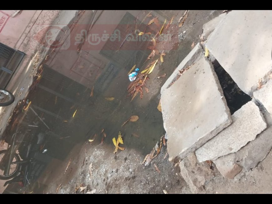 திருச்சி மாவட்டம், ஸ்ரீரங்கம் வட்டம், ஸ்ரீரங்கம் அரசு மருத்துவமனையில் சித்தா பிரிவிற்கு அருகேயும், மத்திய நுண் தொற்று நீக்கும் மையத்திற்கு எதிரிலும், மின்சாரம் மற்றும் ஜெனரேட்டர் அறை வாசலில் உள்ள பகுதிகளில் திறந்தவெளியில் கழிவு நீர் குளமாக தேங்கி காணப்படுகிறது.