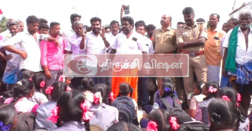 நடவடிக்கையும் எடுக்கவில்லை என கூறப்படுகிறது. இதனால் இன்று காலை இப்பகுதிகளில் உள்ள அரசு பள்ளி மாணவ, மாணவிகள் மணப்பாறை – துவரங்குறிச்சி தேசிய நெடுஞ்சாலை கருமலையில் சாலையில் அமர்ந்து மறியலில் ஈடுபட்டனர். அப்போது சாலை வசதி கேட்டு முழக்கங்கள் எழுப்பினர். மேலும் சம்பவ இடத்தில் மருங்காபுரி வட்டார வளர்ச்சி அலுவலர் மற்றும் புத்தாநத்தம் காவல் துறையினர் மற்றும் வருவாய்த்துறை அதிகாரிகள் பள்ளி மாணவ, மாணவிகள் மற்றும்