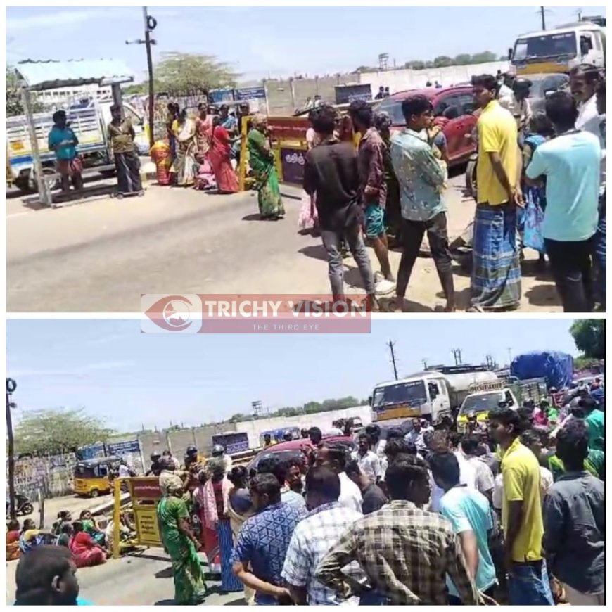 இதனால் ஆத்திரமடைந்த அப்பகுதி பொதுமக்கள் திருச்சி – தஞ்சை தேசிய நெடுஞ்சாலையில் திடீரென காவல்துறையை கண்டித்து சாலை மறியல் போராட்டத்தில் ஈடுபட்டனர். இச்சம்பவம் பற்றி துவாக்குடி போலீசாருக்கு தகவல் கிடைத்ததும் சம்பவ இடத்திற்கு விரைந்து வந்த துவாக்குடி காவல் ஆய்வாளர் ஈஸ்வரன் தலைமையிலான போலீசார் சாலை மறியல் போராட்டத்தில் ஈடுபட்ட பொதுமக்களிடம் சமரச பேச்சுவார்த்தை நடத்தினர்.