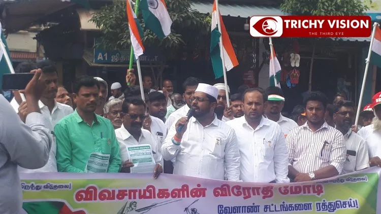 இந்நிலையில் புதிய வேளாண் சட்டங்களை ரத்து செய்யக் கோரி டெல்லியில் போராடும் விவசாயிகளுக்கு ஆதரவு தெரிவிக்கும் வகையில் எஸ்டிபிஐ கட்சியினை சேர்ந்த 100க்கும் மேற்பட்டோர் கைகளில் தேசியக் கொடிகளை ஏந்தியபடி திருச்சி பாலக்கரை ரவுண்டானா பகுதியில் போராட்டத்தில் ஈடுபட்டனர்.