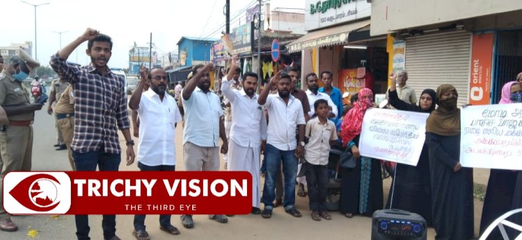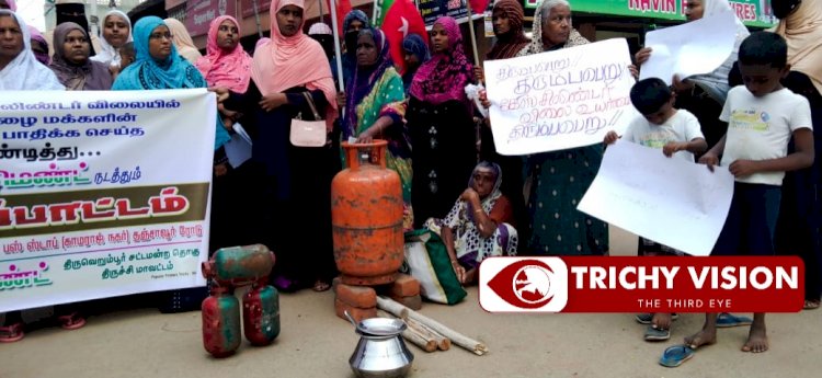 கேஸ் சிலிண்டர் விலை உயர்வை கண்டித்து எஸ்டிபிஐ கட்சியினர் மற்றும் விமன் இந்தியா மூவ்மெண்ட் சார்பாக திருவெறும்பூர் பகுதியில் உள்ள ரயில் நகர் பஸ் ஸ்டாப் அருகில் மாபெரும் கண்டன ஆர்ப்பாட்டம் நடைபெற்றது.