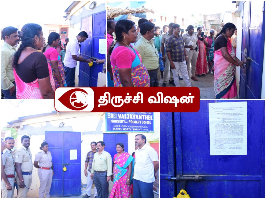திருச்சி மாவட்டம், அந்தநல்லூர் ஒன்றியம், கோப்பு கிராமத்தில் அடிப்படை வசதிகள் இல்லாமல் கோவில் இடத்தில் இயங்கி வந்த ஸ்ரீ வைஜெயந்தி நர்சரி மற்றும் பிரைமரி பள்ளியை கலெக்டர் மூடுவதற்கு உத்தரவிட்டு, இன்று முதன்மைக்கல்வி அலுவலர் அவர்கள் பரிந்துரையின் பேரில் மாவட்டக்கல்வி அலுவலர் (தனியார் பள்ளிகள் ), தாசில்தார், காவல் அதிகாரிகள் முன்னிலையில் பள்ளி பூட்டி சீல் வைக்கப்பட்டது.