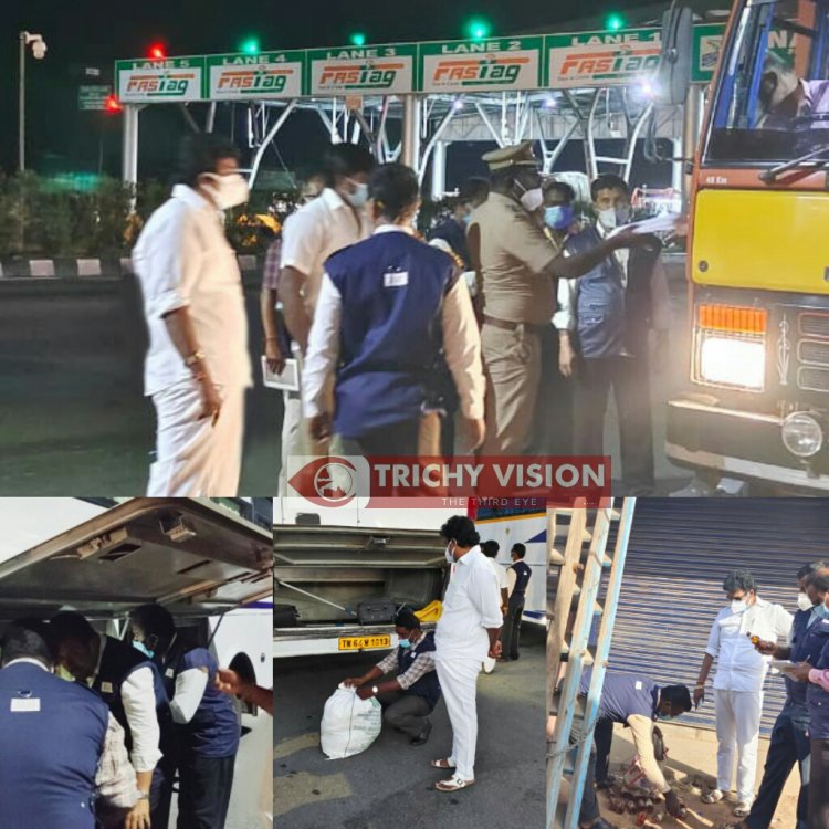 இன்று (02.08.2021) காலை உணவு பாதுகாப்பு துறை மாவட்ட நியமன அலுவலர் டாக்டர் R ரமேஷ் பாபு தலைமையில் போக்குவரத்து ஆய்வாளர் அருண்குமார் மற்றும் காவல் துறை உதவி ஆய்வாளர் ராஜசேகர் மற்றும் உணவு பாதுகாப்பு அலுவலர்கள் கொண்ட குழு இணைந்து திருச்சி சமயபுரம் டோல்கேட் பிளாசாவில் உணவு ஏற்றிகொண்டு வரும் வாகனங்கள் ஆய்வு செய்யப்பட்டது.