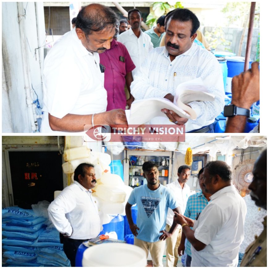 திருச்சிராப்பள்ளி மாநகராட்சி வார்டு 26 குமரன் நகர் சிவன் கோவில் தெரு குடியிருப்பு பகுதியில் மாநகராட்சியின் வணிக உரிமம் பெறாமல் ஹிந்துஸ்தான் எண்டர்பிரைசஸ் என்ற நிறுவனம் சோப்பு திரவம், சலவை வேதிப்பொருட்கள் போன்ற அனேக வேதிப்பொருட்களை மொத்தமாக வரவழைத்து, அதனை தேவையான அளவு கண்டைனர்களில் அடைத்து கடைகளுக்கு விநியோகம் செய்யப்படது.