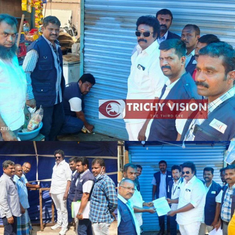 திருச்சி காந்தி மார்க்கெட்டில் உள்ள சக்தி டீ ஸ்டால் மற்றும் சத்திரம் பேருந்து நிலையத்தில் உள்ள அரப்ஜான் பெட்டிக்கடை ஆகிய இரண்டு கடைகளுக்கு உணவு பாதுகாப்பு துறை ஆணையர் செந்தில்குமார் அவசர தடை உத்தரவின் படி திருச்சி மாவட்ட நியமன அலுவலர் ரமேஷ்பாபு தலைமையில் உணவு பாதுகாப்பு அலுவலர் கொண்ட குழுவால் இரண்டு கடைகளுக்கும் செய்யப்பட்டது.