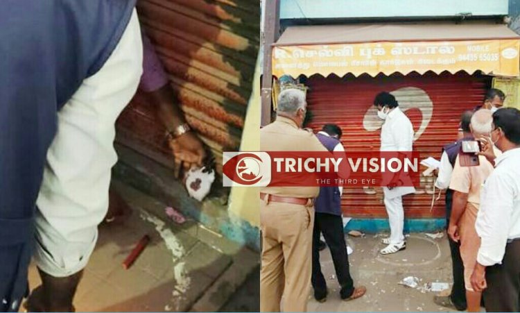 திருச்சி நந்தி கோயில் பகுதியில் இயங்கி வந்த செல்வி புக் மற்றும் ஜெனரல் ஸ்டோர் கடையில் தொடர்ந்து தமிழக அரசால் தடை செய்யப்பட்ட பான்மசாலா, குட்கா போன்ற புகையிலைப் பொருட்கள் விற்பனை செய்வது தொடர்பாக ஆய்வு செய்யப்பட்டது.