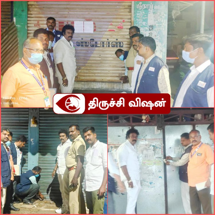 சரவணா மளிகை, இனாம்புளியூர், வியாழன்மேடு, திருச்சி 3.G.E.லெட்சுமி டீ கடை, பெரிய ஆஸ்பத்திரி ரோடு, திருச்சி,ஸ்ரீராம் ஸ்டோர், சண்முகா நகர், உய்யக்கொண்டான்மலை, திருச்சி ‌‌ஆகிய உணவு வணிகங்களுக்கு சீல் வைக்கப்பட்டது.