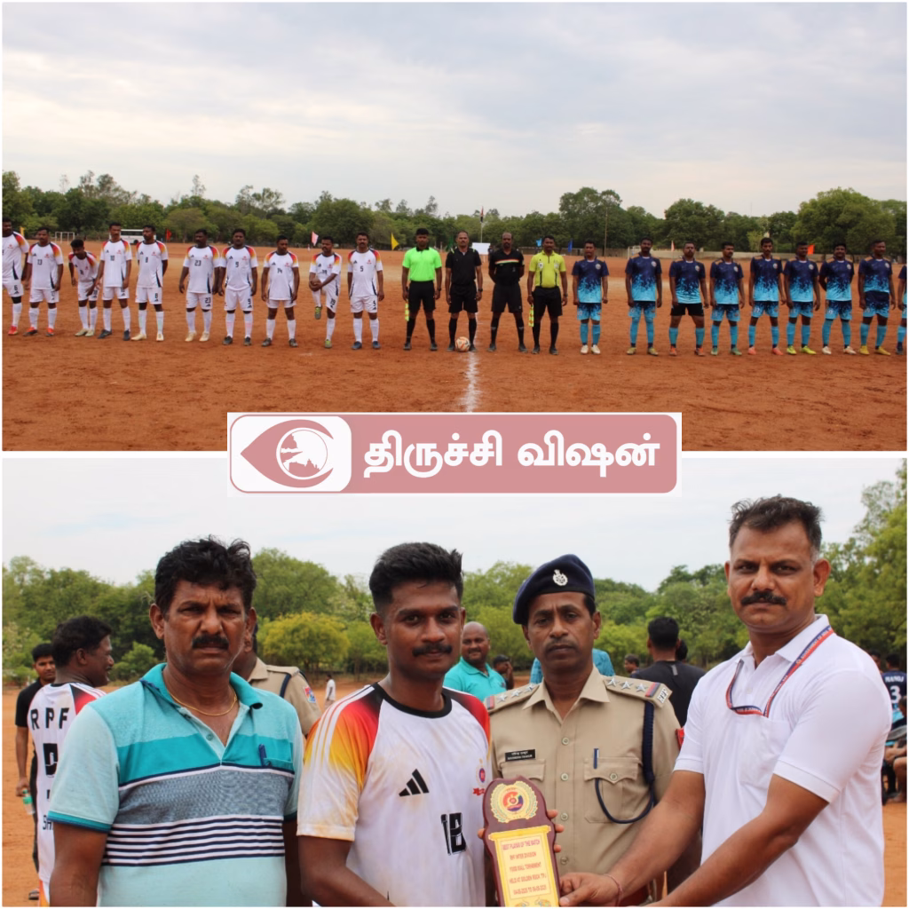 இன்று 05.08.2025, இரயில்வே பாதுகாப்பு படையின் கோட்டங்களுக்கு இடையே பொன்மலை இரயில்வே மைதானத்தில் நடைபெற்ற இரண்டாம் நாள் கால்பந்து போட்டியில் காலை சென்னை அணி திருவனந்தபுரம் அணியை ஒன்றுக்கு பூஜ்யம் என்ற கோல் விகிதத்திலும்,