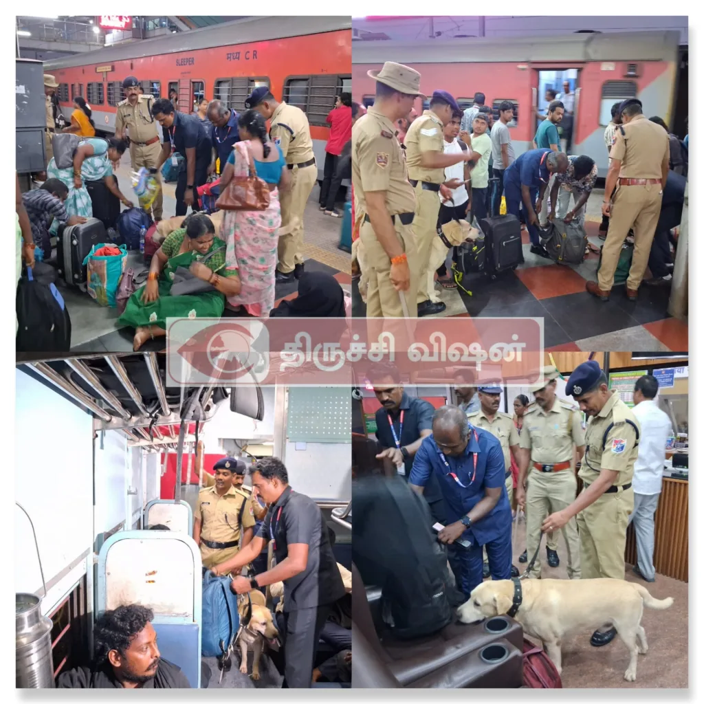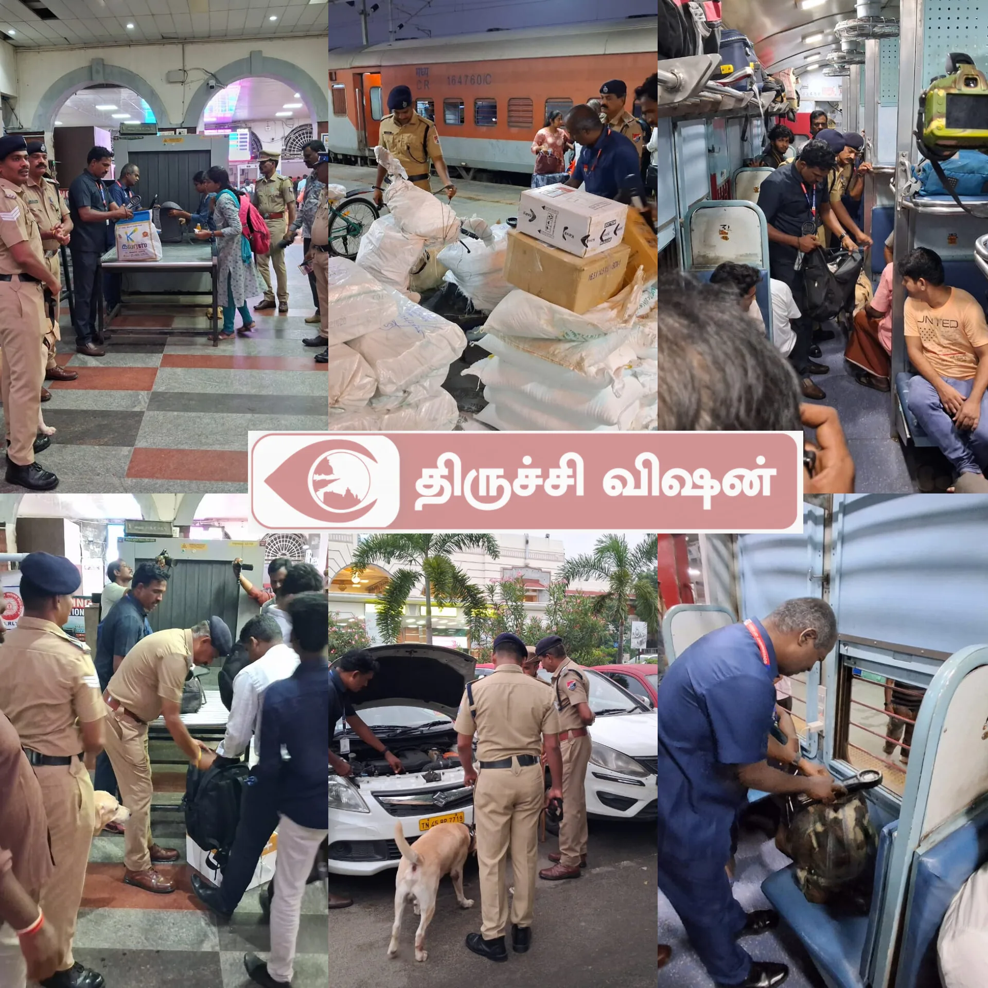 திருச்சி RPF உதவி ஆய்வாளர் ரவிச்சந்திரன், திருச்சி ரயில்வே பாதுகாப்பு படை, வெடிகுண்டு தடுப்பு பிரிவு உதவி ஆய்வாளர் சரவணன், (SARAVANAN,SI/BDS) & ரயில்வே போலீஸ் உதவி ஆய்வாளர் அவர்கள் தலைமையில் இன்று 05.12.2025, திருச்சி ரயில்வே பாதுகாப்பு படை, சப் இன்ஸ்பெக்டர், RPF DOG/ROCKY & RPF தலைமைக் காவலர் ரமேஷ் வெடிகுண்டு தடுப்பு பிரிவு கணேசன் & பிரபாகரன், CITY BDDS/Trichy மற்றும் சாம் ஆலன், உதவி ஆய்வாளர்/ரயில்வே போலீஸ் இணைந்து