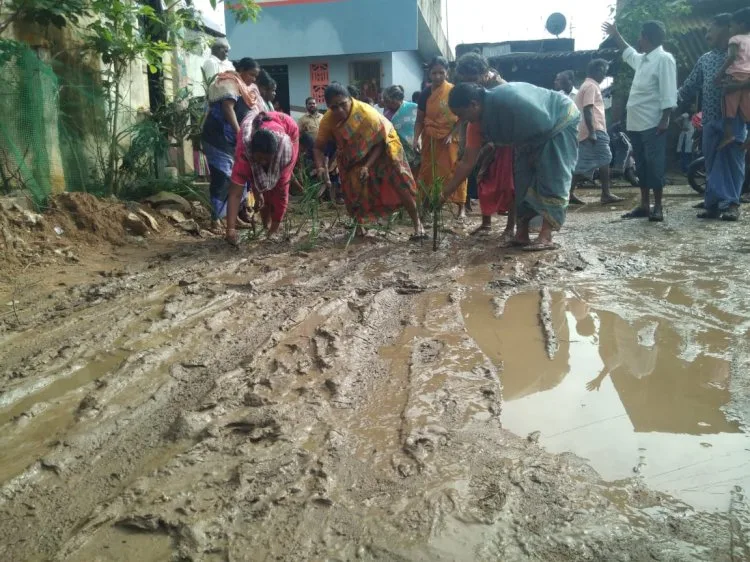 இந்நிலையில் திருச்சி கீழே தேவதானம் 8 வது வார்டு பகுதி ரயில்வே கேட் அருகில் அப்பகுதி பொதுமக்கள் தேங்கியுள்ள மழைநீர் சகதியில் நாற்று நடும் போராட்டத்தில் ஈடுபட்டனர். மேலும் சாலை மறியலில் ஈடுபட்டதோடு உடனடியாக நடவடிக்கை எடுக்க வேண்டும் எனவும் கோரிக்கை வைத்தனர்.