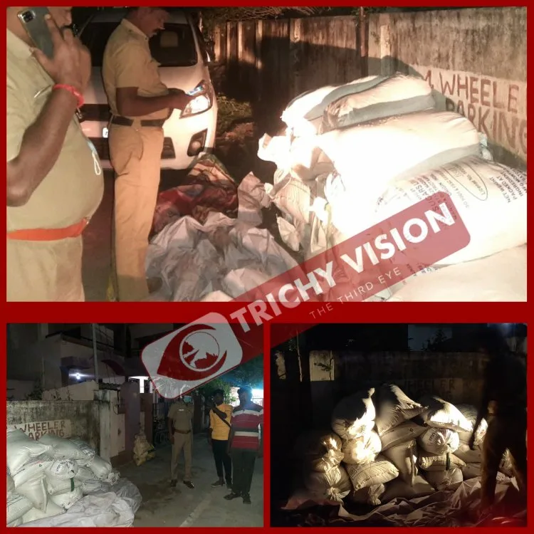திருச்சியில் சாலையோரத்தில் கேட்பாரற்று கிடந்த ஒரு டன் ரேசன் அரிசி பறிமுதல்