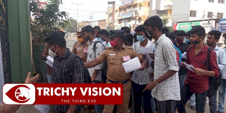 தமிழ்நாடு சீருடை பணியாளர் தேர்வாணையம் சார்பில் சமீபத்தில் இரண்டாம் நிலை காவலர் பணிக்கான அறிவிப்பு வெளியானது. இந்நிலையில் இன்று திருச்சி மாநகரில் 11 இடங்களிலும், புறநகர்களில் 37 மையங்களிலும் தேர்வு நடைபெற்று வருகிறது.