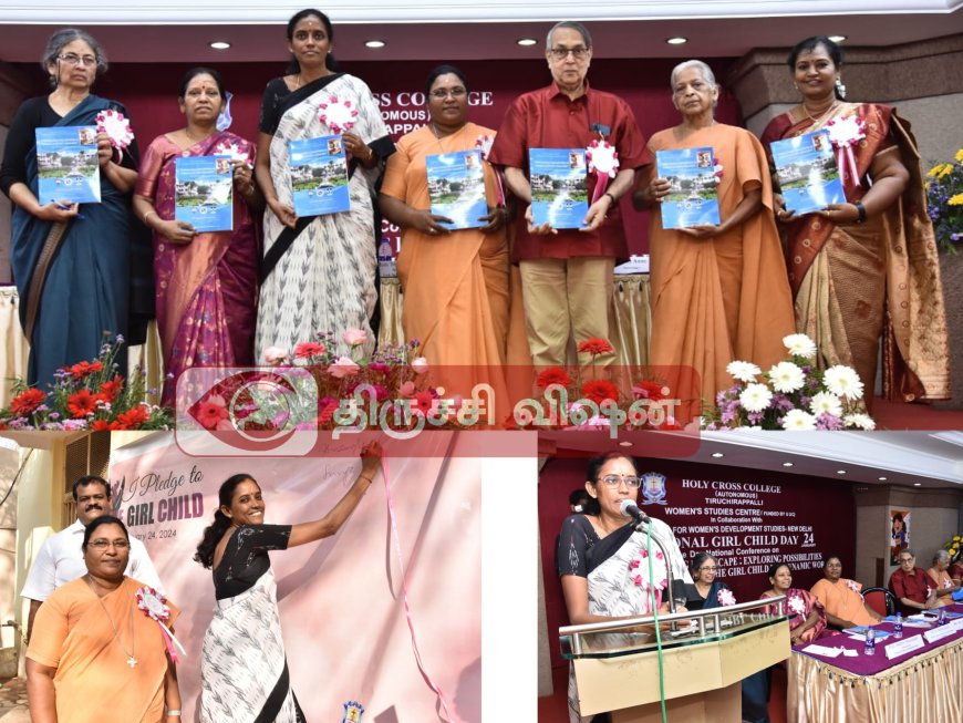 திருச்சிராப்பள்ளி ஹோலி கிராஸ் கல்லூரியில் (தன்னாட்சி), Women studies center (யுஜிசி நிதியுதவி) சார்பில் “வளரும் நிலப்பரப்பு: மாறும் உலகில் பெண் குழந்தைகளுக்கான சாத்தியக்கூறுகள் மற்றும் சவால்களை ஆய்வு செய்தல்” என்ற தேசிய கருத்தரங்கு பெண்கள் மேம்பாட்டு ஆய்வு மையத்துடன் இணைந்து, புது தில்லி. 24 ஜனவரி 2024 இன்று (புதன்கிழமை) காலை 9.00 மணி முதல் மாலை 5.00 மணி வரை லேடி ஹாலில் நடைப்பெற்றது.