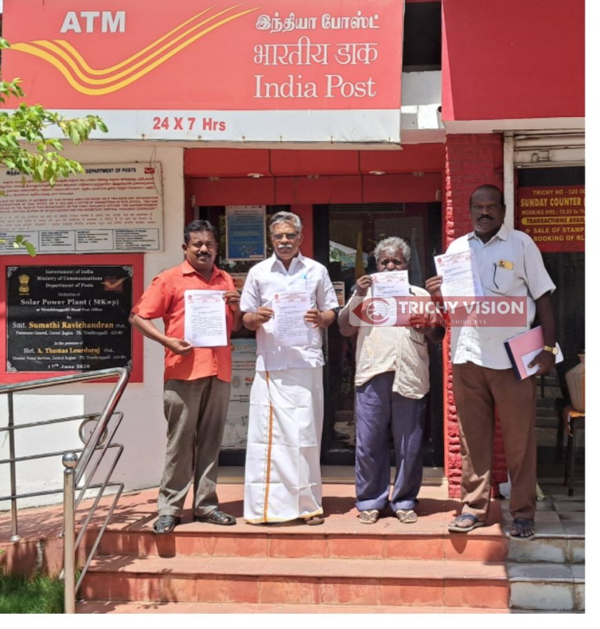 தமிழ்நாடு ஏஐடியுசி கட்டட தொழிலாளர் சங்கம் சார்பில் அனுப்பி வருகின்றனர். திருச்சிராப்பள்ளி தலைமை தபால் நிலையத்தில்பதிவு தபால் அனுப்பும் நிகழ்வில் மாநிலத் துணைத் தலைவர் க.சுரேஷ் மாவட்டச் செயலாளர் செல்வகுமார் தலைவர் முருகன், துணைத் தலைவர் துரைராஜ் உள்ளிட்டோர் பங்கேற்றனர்.