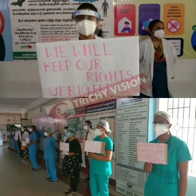 திருச்சி அரசு மருத்துவமனையில் கோவிட் நோயாளிகளுக்கு சிகிச்சை அளித்து வரும் முதுநிலை மருத்துவர்களும் தற்போது சிகிச்சை அளிக்காமல் தர்ணா போராட்டத்தில் ஈடுபட்டு வருவதால் பரபரப்பு ஏற்பட்டுள்ளது.