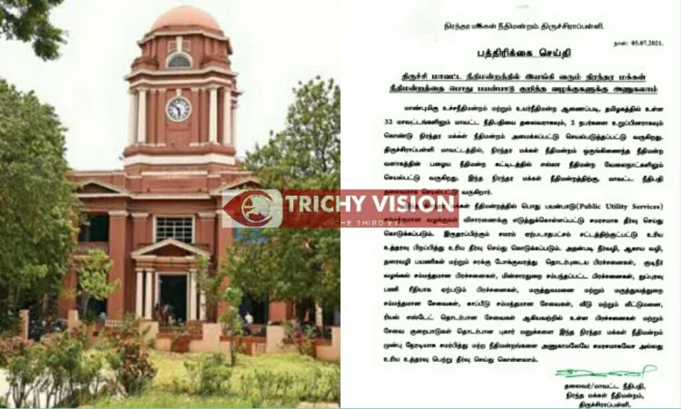 திருச்சி மாவட்டத்தில் நிரந்தர மக்கள் நீதிமன்றம் ஒருங்கிணைந்த நீதிமன்ற வளாகத்தில் பழைய நீதிமன்ற கட்டிடத்தில் எல்லா நீதிமன்ற வேலை நாட்களிலும் செயல்பட்டு வருகிறது. இந்த நிரந்தர மக்கள் நீதிமன்றத்திற்கு மாவட்ட நீதிபதி தலைவராக செயல்பட்டு வருகிறார். இந்த நிரந்தர மக்கள் நீதிமன்றத்தில் பொது பயன்பாடு (public Utility services) சம்பந்தமான வழக்குகள் விசாரணைக்கு எடுத்துக் கொள்ளப்பட்டு சமரசமாக தேர்வு செய்து கொடுக்கப்படும்.