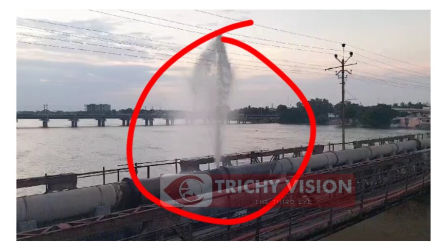 திருச்சி பழைய காவிரி பாலத்தில் பாதாள சாக்கடைக்கான நீரேற்று குழாய் அமைக்கப்பட்டுள்ளது. 30 ஆண்டுகளுக்கு மேலே ஆகிவிட்டதால் பெரிய குழாயில் ஆங்காங்கே சிறு சிறு விரிசல் ஏற்பட்டுள்ளது. தற்பொழுது குழாயில் இருந்து கழிவு நீர் வேகமாக வானை நோக்கி பீய்ச்சி அடித்துக் கொண்டிருக்கிறது.
