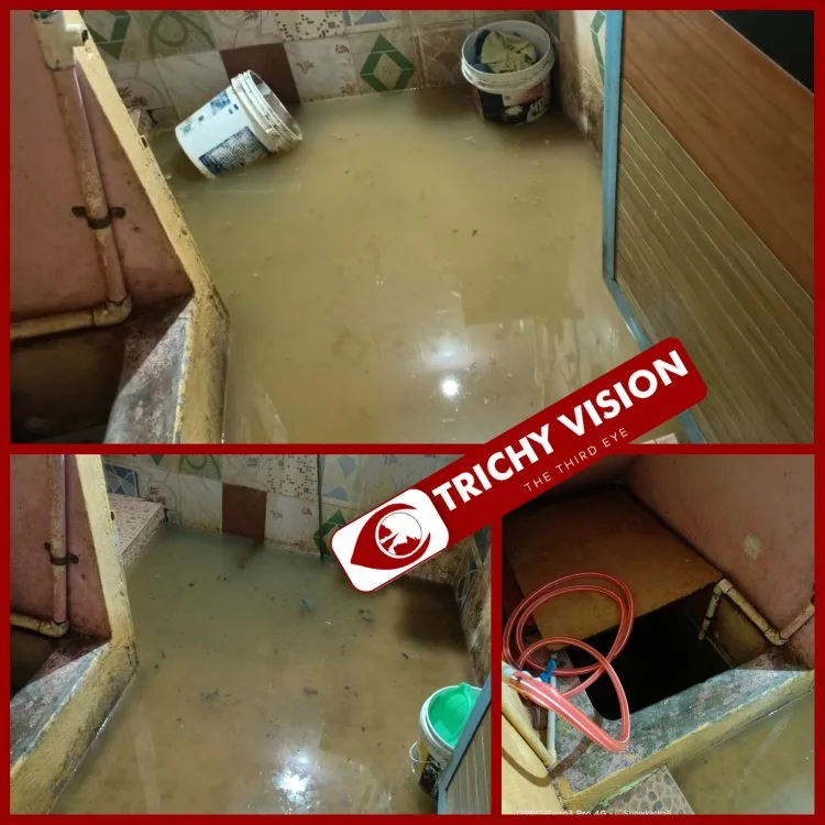 திருச்சியில் மாற்றுத்திறனாளி வீட்டுக்குள் பாதாள சாக்கடை நீர் – அவதி – மாநகராட்சி உதவிட வேண்டுகோள்