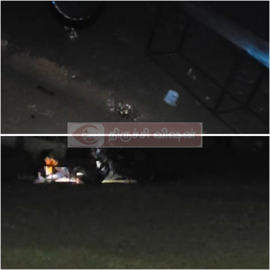 காட்டூர் பகுதியைச் சேர்ந்த சில நபர்கள் மது அருந்தி கொண்டிருந்ததாக SFI-யின் மாநில துணைச் செயலாளர் மோகன் குமார் என்பவர் காவல் நிலையத்திற்கு தகவல் தெரிவித்துள்ளார்.உடனடியாக திருவெறும்பூர் காவல் நிலைய போலீஸார் மேற்படி பள்ளி மைதானத்திற்கு சென்று பார்த்த போது அங்கு நான்கு நபர்கள் இருந்துள்ளனர். அதில் இருவர் மது அருந்தியும், மற்ற இரு நபர்கள் மது அருந்தாமலும் இருந்துள்ளனர். அதில் ஒருவர் மணிகண்டம் காவல் நிலைய முதல்நிலை காவலர் (2038)இளையராஜா என்பவர் என தெரிய வந்துள்ளது. மேற்படி காவலர் அப்பகுதியைச் சேர்ந்தவர் என்பதனாலும், மேற்படி நபர்கள் அவரது நண்பர்கள் என்ற வகையில் தற்செயலாக அப்பகுதிக்கு சென்று வகையில் பேசிக்கொண்டிருந்துள்ளார் என போலீஸாரின் விசாரணையில் தெரிய வந்தது.