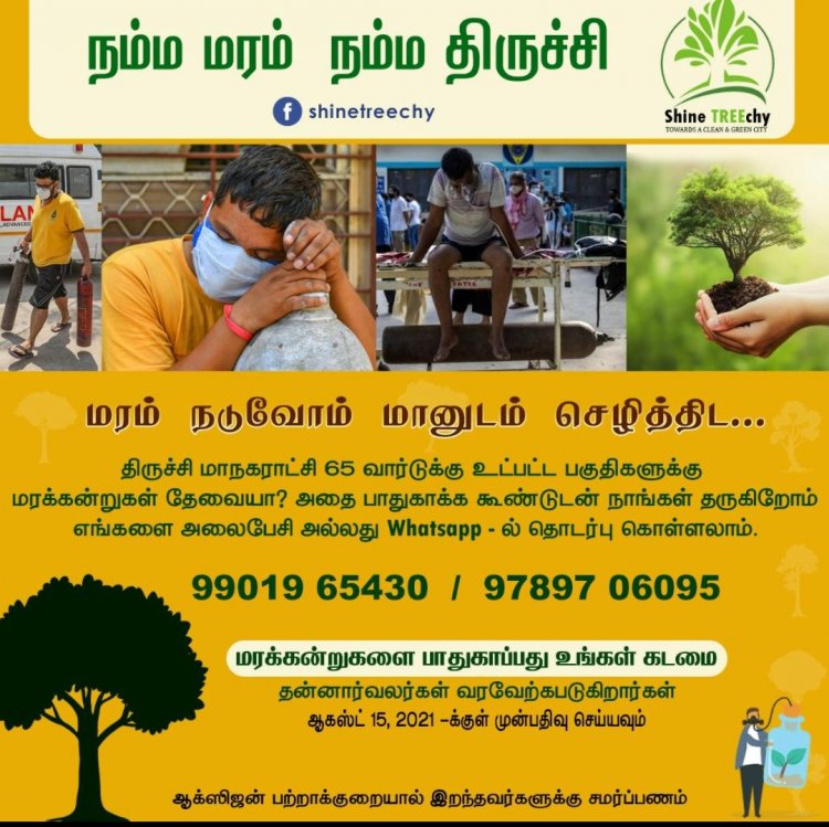 “நம்ம மரம் நம்ம திருச்சி” என்கிற தலைப்பில் திருச்சியின் 65 வார்டுகளிலும் மரம் நட்டு பராமரிக்க தன்னார்வலர்கள் தேவை என்று ஷைன் திருச்சி அமைப்பினர் அழைப்பு விடுத்திருக்கின்றனர்.