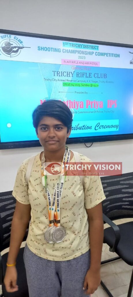 துப்பாக்கி சூடும் போட்டி – வெண்கலம் பதக்கம் வென்ற திருச்சி மாணவி