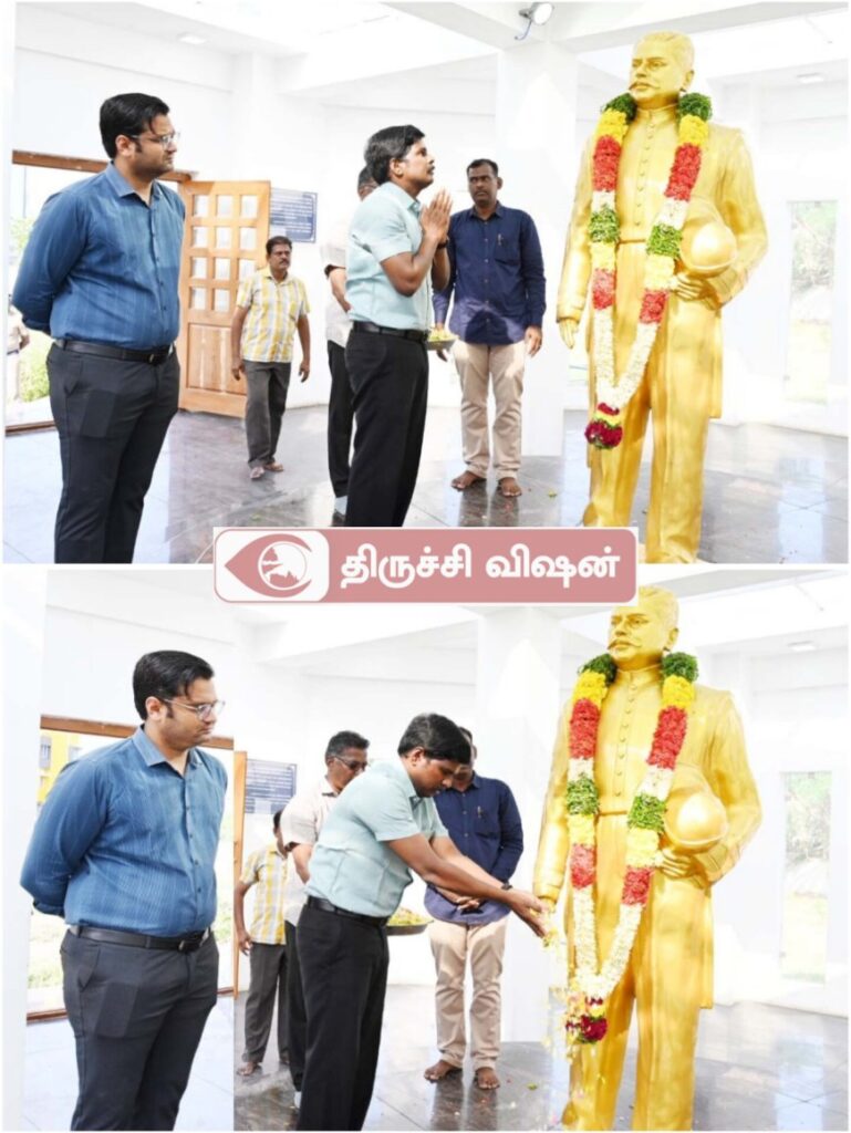 திருஉருவ சிலைக்கு அரசு சார்பில் இன்று (01.06.2025) மாவட்ட ஆட்சித்தலைவர் மா பிரதீப் குமார் அவர்கள் மாலை அணிவித்து மலர் தூவி மரியாதை செலுத்தினார். இந்நிகழ்ச்சியில் மாநகராட்சி ஆணையர் வே சரவணன், திருச்சிராப்பள்ளி வருவாய்