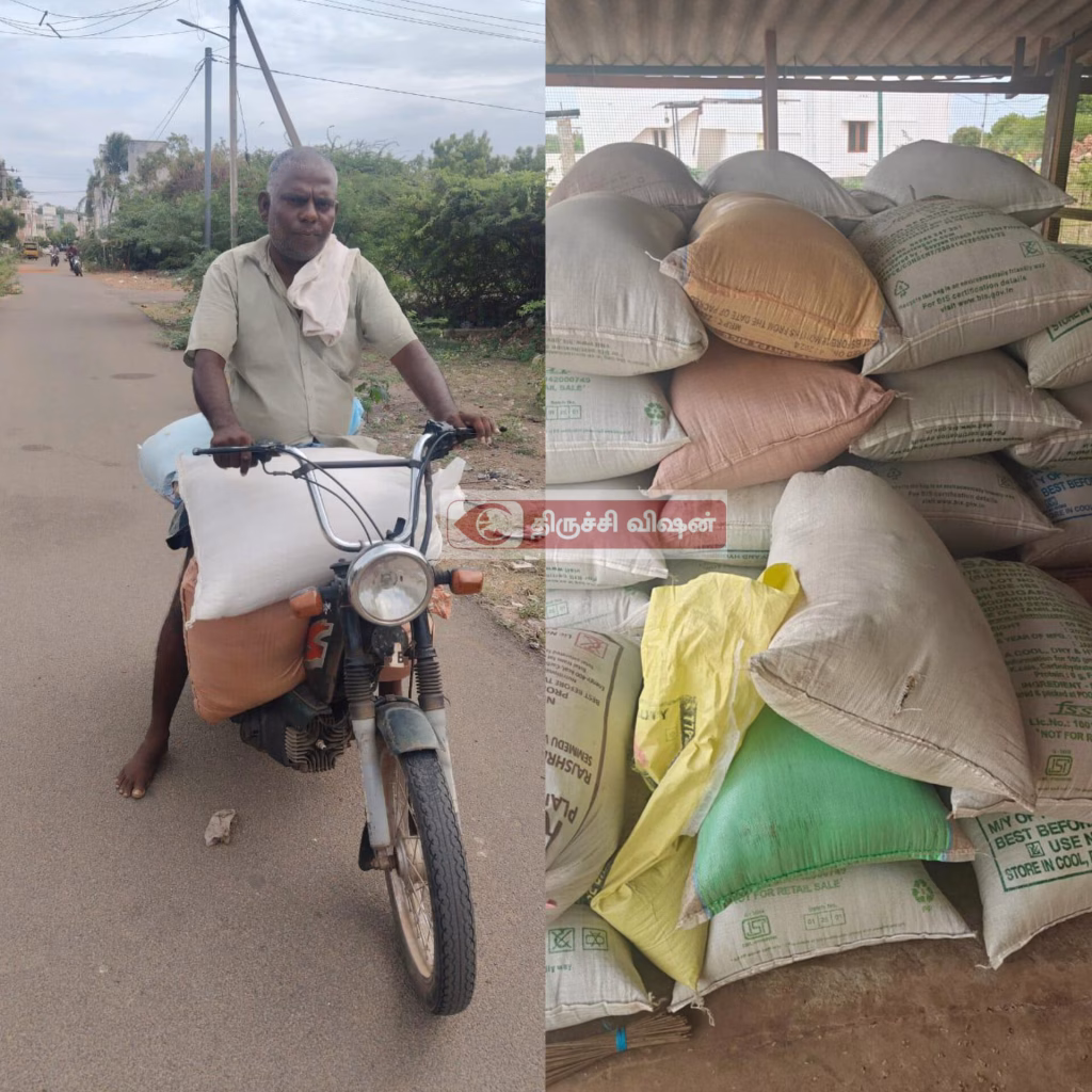 இருசக்கர வாகனத்தில் கடத்தி வருவதாக போலீசாருக்கு கிடைக்கப்பெற்ற தகவலை அடுத்து அந்த பகுதியில் போலீசார் சோதனை மேற்கொண்டதில் திருச்சி மணப்பாறை தாலுக்கா தொப்பம்பட்டி கிராமத்தைச் சேர்ந்த மாணிக்கம் s/o ரத்தினம் வயது 53 என்பவர் ரேஷன் அரிசியை கள்ளச் சந்தையில் விற்பனை செய்வதற்காக