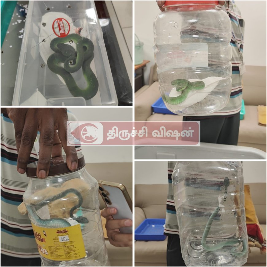 ஒருவரின் சூட்கேஸை சோதனை செய்ததில் இந்திய வனத்துறையால் தடை செய்யப்பட்ட 26 அரிய வகை பச்சை பாம்புகள் அதில் இருந்தன. அவற்றை பறிமுதல் செய்த சுங்கத்துறையினர் அந்தப் பயணியிடம்