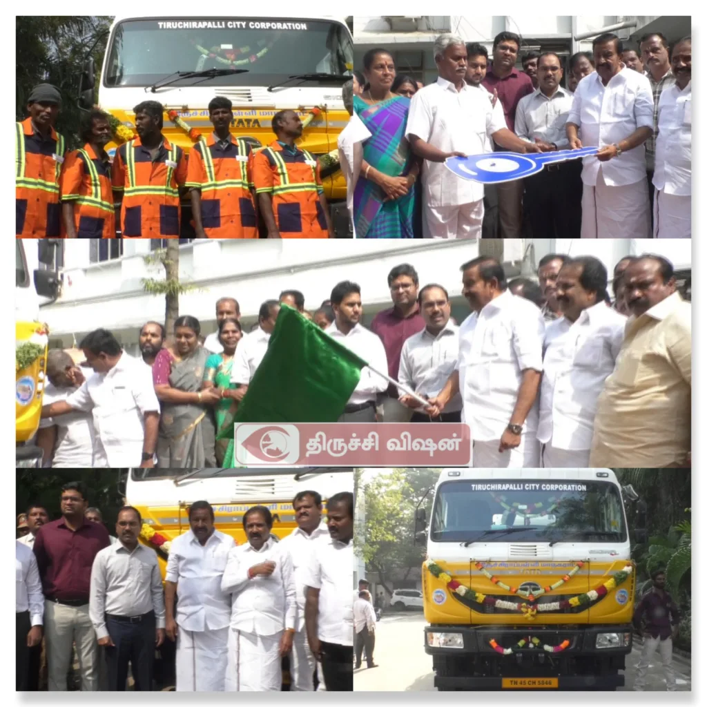 திருச்சி மாநகராட்சி அலுவலகத்தில் திருச்சி மாநகராட்சி பகுதிகளில் புதை சாக்கடை அடைப்பை நீக்கும் வகையில் ரூபாய். 3.78 கோடி மதிப்பீட்டில் புதிதாக வரப்பெற்ற சூப்பர் சக்கர ரீசைக்கிளினர் வாகனத்தை (Super Sucker Cum Jetting with Recycling Facility Vechcle) மாநகராட்சியின் பயன்பாட்டிற்கு நகராட்சி நிருவாக துறை அமைச்சர் கே.என்.நேரு, கொடியசைத்து தொடங்கி வைத்தார்.