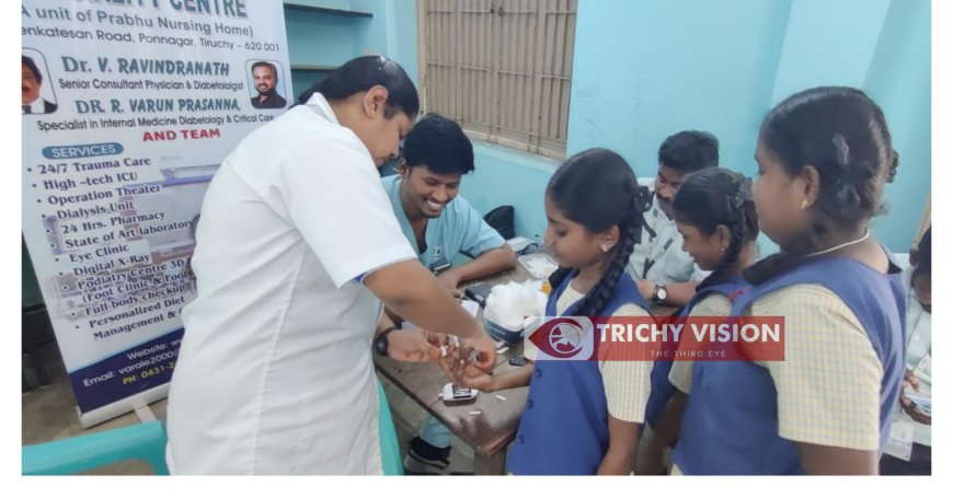 திருச்சிராப்பள்ளி ராயல் லயன்ஸ் சங்கம் பிரபு டயாபட்டீஸ் மல்டி ஸ்பெஷாலிட்டி சென்டர் உடன் இணைந்து பள்ளி மாணவ, மாணவிகளுக்கு டைப் 1 நீரிழிவு நோய் கண்டறியும் சிறப்பு முகாம் திருச்சி தென்னூர் விஸ்வநாதபுரம் பகுதியில் உள்ள சுப்பையா நினைவு நடுநிலைப்பள்ளி வளாகத்தில் நடைபெற்றது.