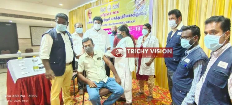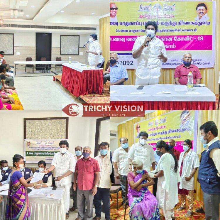 திருச்சி சத்திரம் பேருந்து நிலையத்தில் உள்ள தனியார் விடுதியில் உணவு வணிகர்கள் மற்றும் அவர்கள் குடும்பத்தினருக்கான சிறப்பு தடுப்பூசி முகாம் மற்றும் பதிவு / உரிமம் சிறப்பு முகாம் நடைபெற்றது.