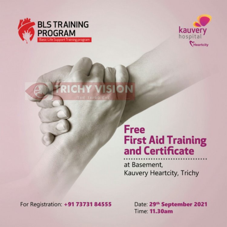 கண்டோன்மெண்ட்டில் செயல்பட்டு வரும் காவேரி ஹார்ட்சிட்டியில் நாளை (29.08.2021) காலை 11.30 -12.30 ஒரு மணி நேரம் முதலுதவி குறித்த இலவச பயிற்சியில் பொதுமக்கள் அனைவரும் கலந்து கொள்ளலாம். அடிப்படை உயிர் ஆதரவு ( BLS ) என்பது உயிருக்கு ஆபத்தான நோய்கள் அல்லது காயங்களால் பாதிக்கப்பட்டவர்களுக்கு மேம்பட்ட வாழ்க்கை ஆதரவு