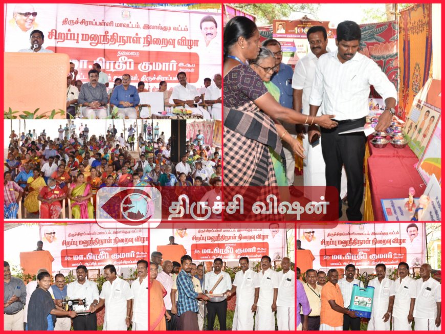 திருச்சிராப்பள்ளி மாவட்டம், இலால்குடி வட்டம், கீழ்பெருங்காவூர் கிராமம் புனித பிலோமினால் ஆர். சி.நடுநிலைப்பள்ளி வளாகத்தில் இன்று (26.04.2023) நடைபெற்ற சிறப்பு மனுநீதி நாள் முகாம் நிறைவு விழா நடைபெற்றது.