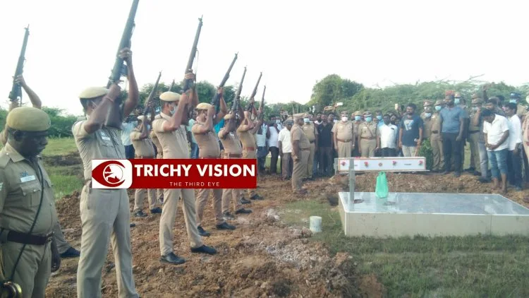 சிறப்பு எஸ்ஐ பூமிநாதன் உடல் 21 குண்டுகள் முழங்க காவல்துறை மரியாதையுடன் நல்லடக்கம் செய்யப்பட்டது.