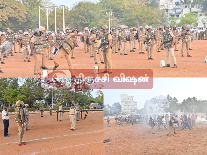 தமிழக காவல்துறை தலைமை இயக்குநர் / காவல்படை தலைவர் உத்தரவின்பேரில், திருச்சி மாநகரில் காவல் அதிகாரிகள் மற்றும் ஆளிநர்கள் கலந்து கொண்ட கவாத்துபயிற்சியும் மற்றும் கலவரங்கள் ஏற்பட்டால் கலவரத்தை எப்படி அடக்கி, கலவரத்தை கட்டுப்படுத்தும் கவாத்து (MOB Operation Parade) ஒத்திகையும், கலவரத்தில் பாதிக்கப்பட்டவர்களை துரிதமாக மீட்டு முதலுதவி செய்வது உள்ளிட்ட ஒத்திகையானது காவல் ஆணையர் ந.காமினி, மேற்பார்வையில் இன்று (17.02.2024)-ந் தேதி திருச்சி மாநகர கே.கே.நகர் ஆயுதப்படை மைதானத்தில் நடைபெற்றது.