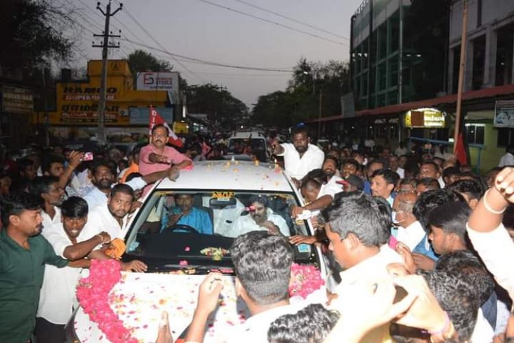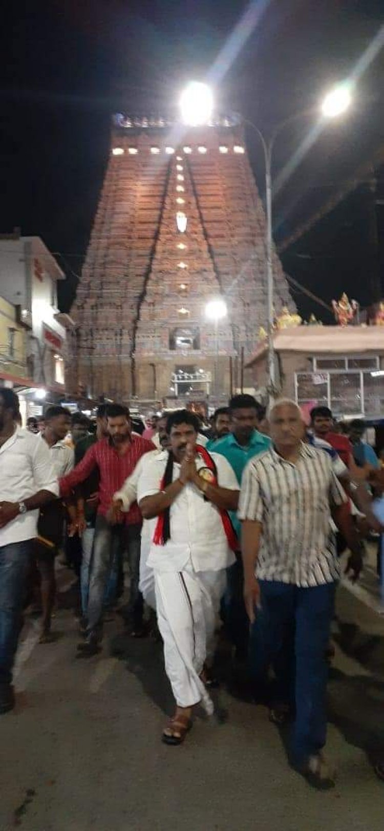 திருச்சி ஸ்ரீரங்கம் சட்டமன்ற தொகுதி திமுக வேட்பாளர் பழனியாண்டி போட்டியிடுகிறார். இதனையடுத்து முதற்கட்ட பிரச்சாரத்தை தொடங்கிய பழனியாண்டிக்கு ஶ்ரீரங்கம் ராஜகோபுரம் அருகே பிரமாண்ட வரவேற்பு வழங்கப்பட்டது.