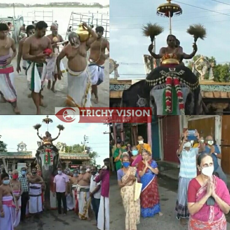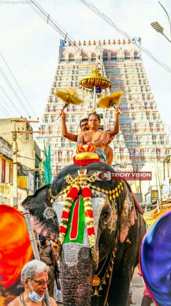 கடந்த 23ம் தேதியன்று ரெங்கநாதருக்கு ஆனித்திருமஞ்சனம் மேற்கொள்ளப்பட்டதையடுத்து, மிகவும் விஷேசமான இன்று ரெங்கநாயகி தாயாருக்கான ஜேஷ்டாபிஷேகத்தின் போது அம்மாமண்டபம் புனித திருக்காவிரியிலிருந்து தங்க குடத்தில் நிரப்பப்பட்ட புனித நீரை கோவில் யானை ஆண்டாள் மீது வைத்து கொண்டு வரப்பட்டது மற்றும் வெள்ளிக்குடங்களில் நிரப்பப்பட்ட திருமஞ்சனம்(புனிதநீர்) கோவில் அர்ச்சகர்களால் சுமந்து கோவிலுக்குள் கொண்டு வரப்பட்டது.