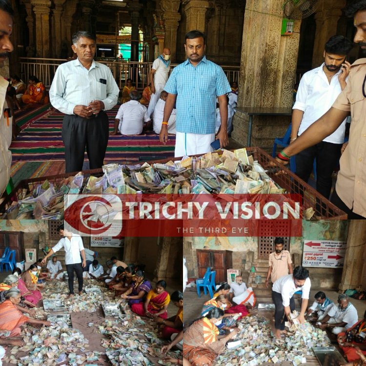 திருச்சி ஸ்ரீரங்கம் அரங்கநாதசுவாமி திருக்கோயில் (20.04.2022) இன்று கோயில் இணை ஆணையர் செ.மாரிமுத்து முன்னிலையில் மாதாந்திர உண்டியல்கள் திறக்கப்பட்டது.